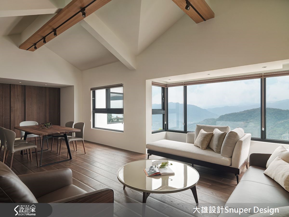 故事始于一片绝佳的景致与山边小屋,90 坪的老屋,在设计师变革之下,顺应使用者状态,重新组列空间动线,让複层格局层层通透独立,但同时相互卡构串连,并挹注现代风格语彙,赋予山居生活新的面貌。整建过程中保留原始屋根,并于屋顶加建 T 型木作灯槽、天花融入