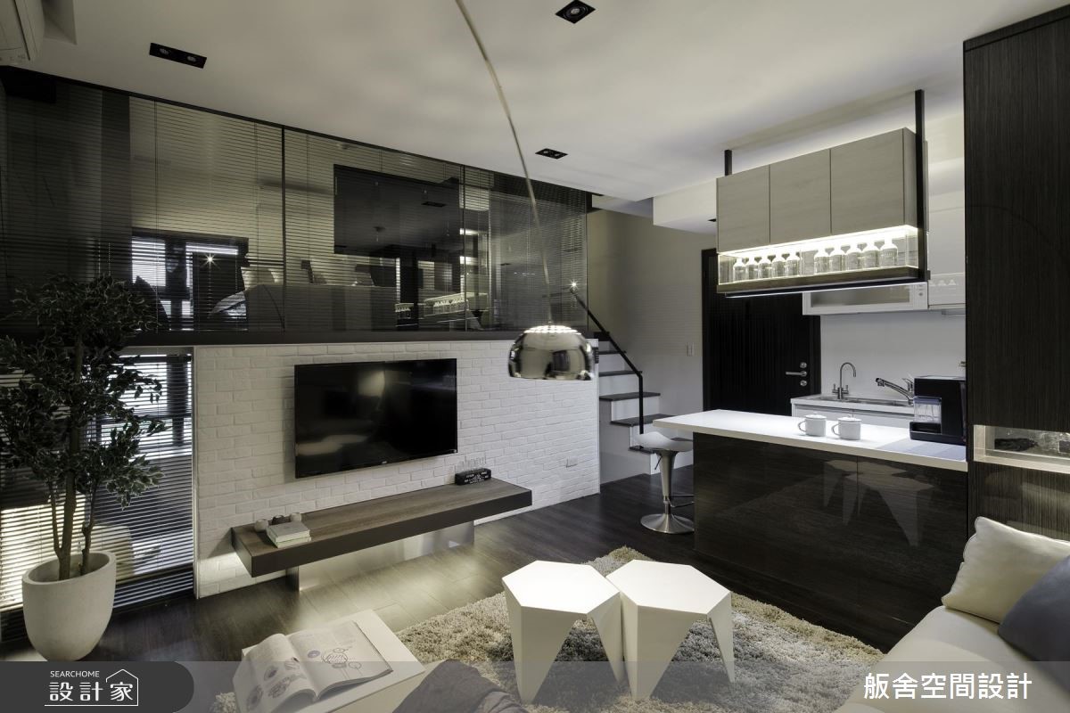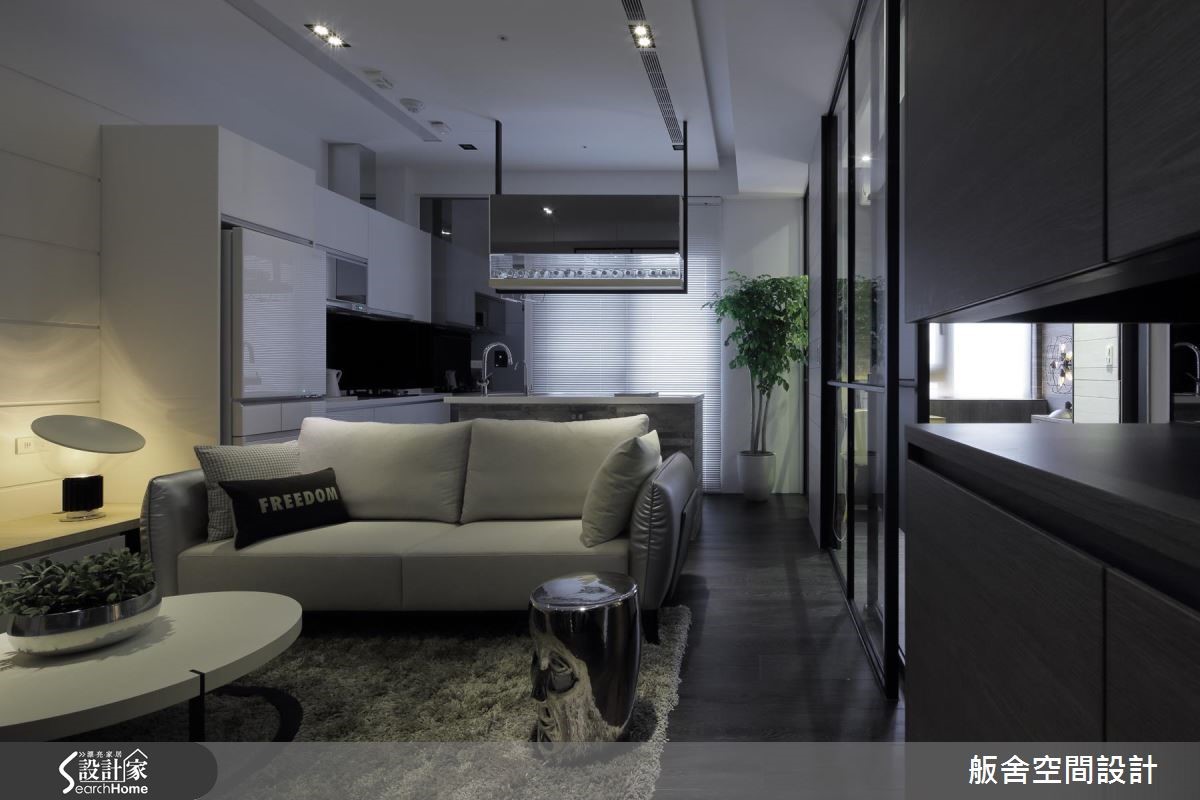 富有品味的年轻夫妻购置位于近郊山区的99平米居宅,屋案有着良好的基地条件,包含大面积开窗及通透视野,却因30年屋龄,有漏水潮湿与格局零碎问题,着请舨舍设计化解老屋问题,打造时尚现代宅邸。 【开放式与纯白色,塑造扩容效果】由于男屋主是3C产品迷、女主人