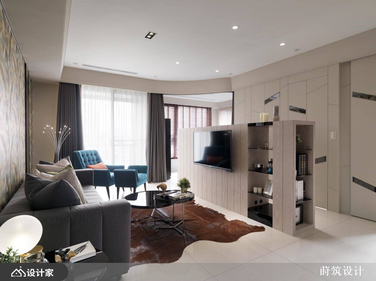 设计师依据使用者需求、挹注空间机能,并借着线条、格局与动线的擘画拓大视觉感受,让居家每个角度都充满令人惊喜的风景,快跟着小编一起来看看吧!厅区规划放低的电视墙,成为界定场域的隔间墙,保有光线与视觉的串连,并形塑空间放大感,电视墙则结合展示与收纳功能,
