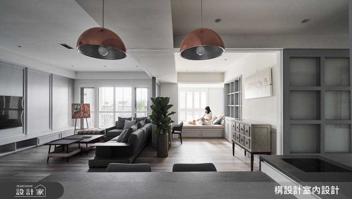 「打造一个能让心境慢下来,细细品味生活中的每个时刻。」是构设计给准备退休屋主的献礼。165平米新成屋以美式风经典的线板、砖墙、木地板来建构优雅舒适的空间风格,顺着梁柱结构用玻璃拉门在公共区域,让客厅、书房与厨房中岛彼此共享又能各自独立,创造更灵活的开