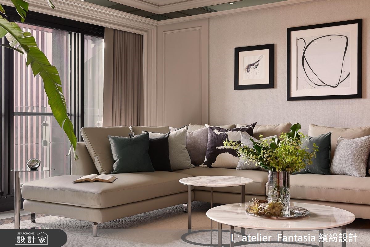 在客变阶段便提早规划空间设计,替屋主打造最完美的生活型态,同时也省下日后拆除修改费用。整体结合屋主喜爱的法式古典风,以现代感的利落线条收边、修饰,搭佐精致质感的饭店风尚,回到家随即享受精品般的生活质感。从玄关进入客厅,特别于角落规划一处缓冲区,经典沙