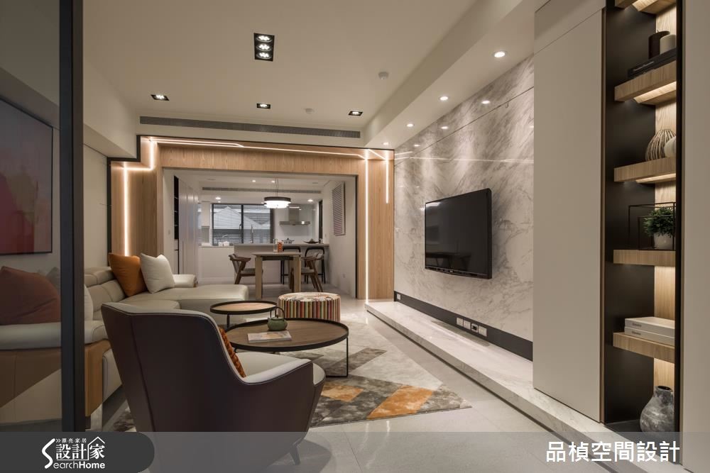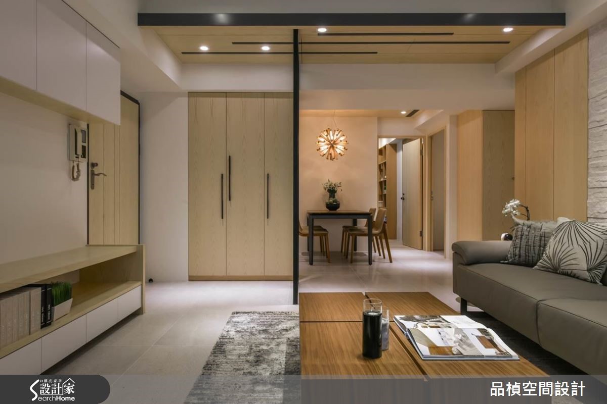 设计师重划神龛与卫浴位置,接着调整公私领域比例,并打开领域视野,让家人除了拥有宽裕的私人空间,更能在公共区域享受欢聚之乐。玄关以悬柜提升视觉轻盈度,并采用易清洁的灰阶地坪搭配灰玻,立刻就能打造穿透性十足的入门风景。