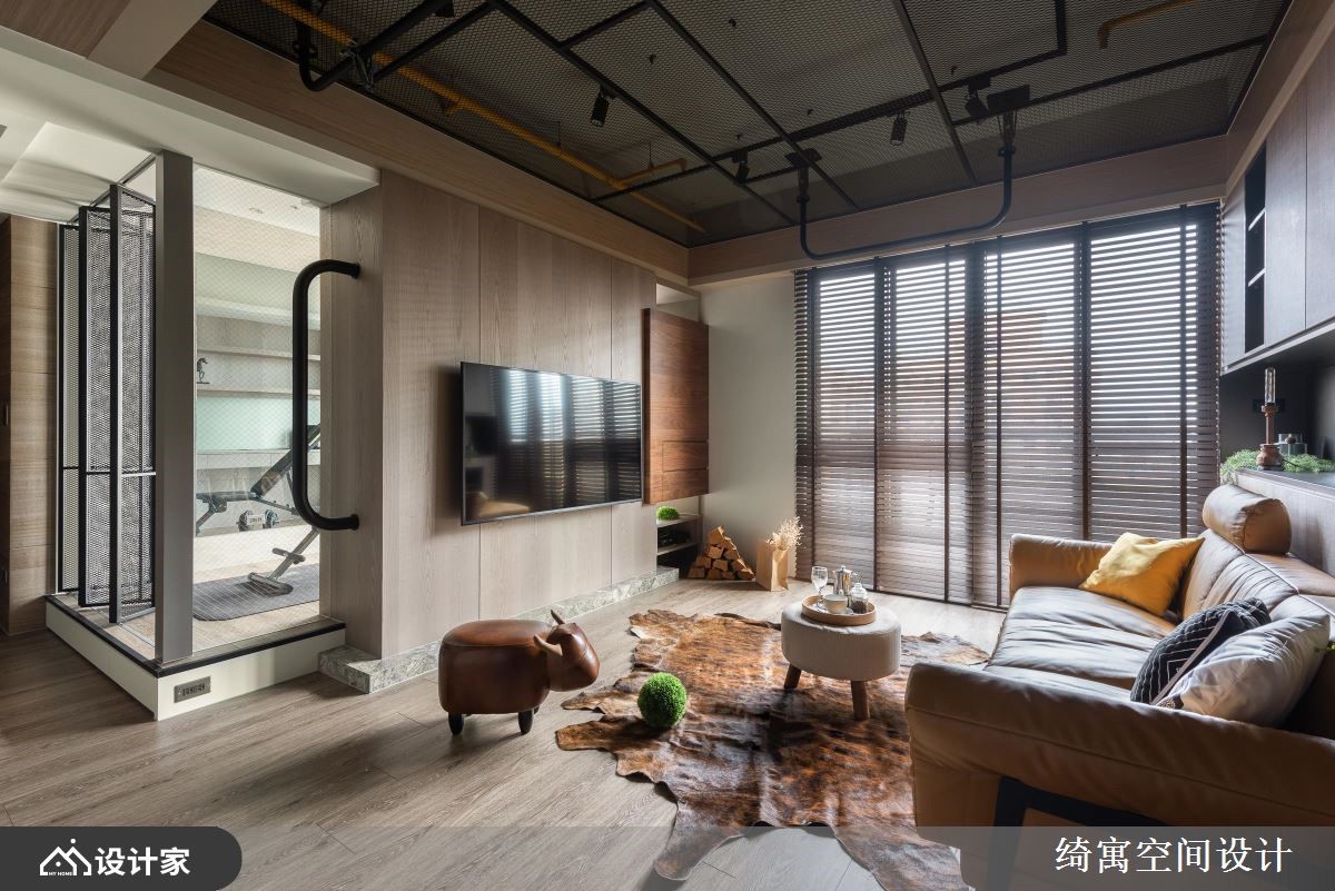设计师引用通透的玻璃建材,搭配阳刚的铁网元素,作为整个空间的共同语汇,不仅达成交流采光与扩容的作用,也带出工业风的粗犷之美!