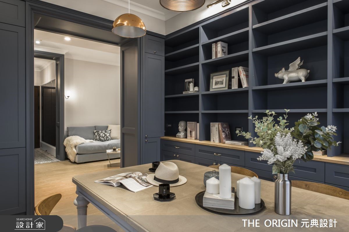 住宅使用灰蓝色作为主调,并合宜安排每一道窗面的大小及位置,引导光线的自由流动,同时选用清透的隔间形式,以玻璃门片打造采光通透、气场流通的舒适情景,适时提点敞亮度与扩容感;软件上,则借着石材、家具及人字拼木地板述说不凡的品味,并舍弃制式的电视主墙,以具人文气质的书柜取而代之;而结合餐厅与书房的双重领域,则让餐桌同时也兼具书桌功能,以高效益的复合场域设计,在有限场域之中满足生活所需!