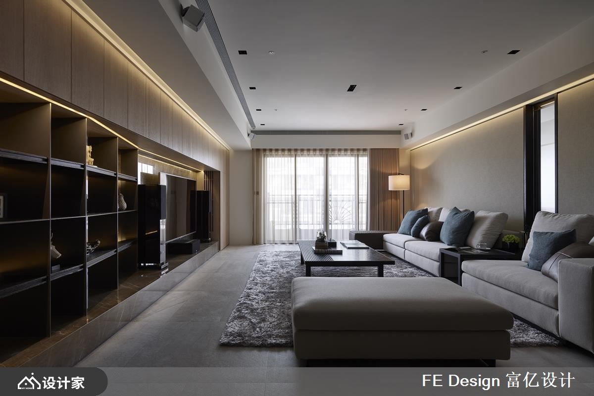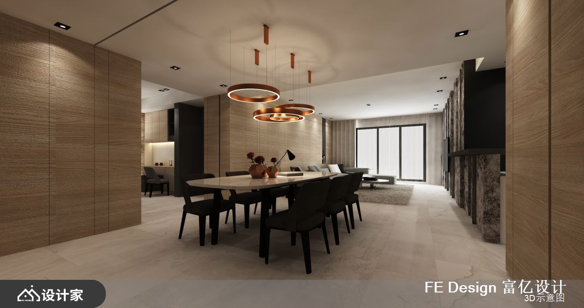 格局配置上,将客厅与餐厅、厨房连成一气,使公共空间的阻隔降到最低,让空间感往水平方向延展,而玻璃帷幕的落地窗设计,也拉高了垂直尺度,并以窗户纳入白天的好景观,入夜后亦别有另一番风情;除了在一楼打造迎宾客厅之外,上层也额外规划起居厅,并让走道呈开放式规划,连结上下楼层的挑高视野,让每个场域享有不同的观景视角;整体以简洁大方的用色与低光泽的材料,缔造低调高雅的品味,且妆点具有巧思的照明灯光,隐隐烘托典雅氛围,丰富居家各个角落的独特表情!
