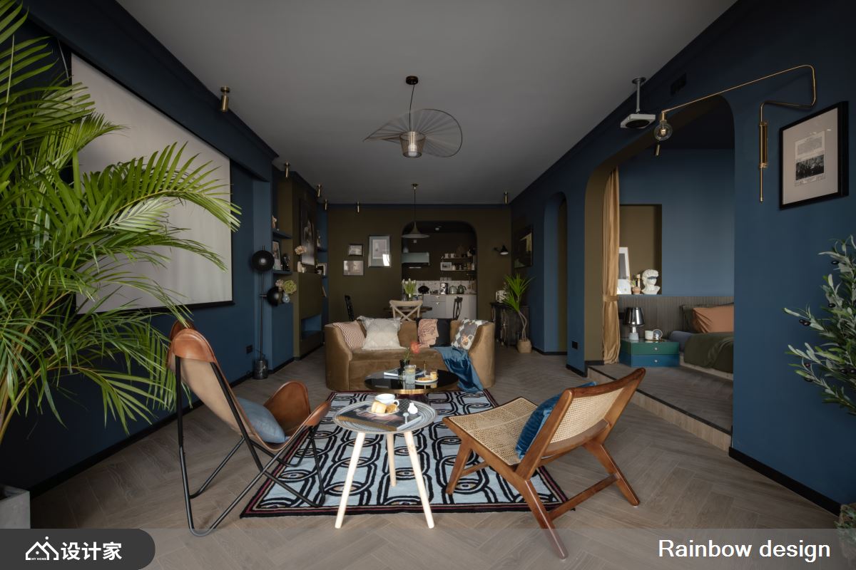 将原始入户门洞封起来,做了入户端景墙,直入的动线改为从厨房进入餐厅,同时入户门洞的调整,也让客餐厅的壁炉墙以及投影幕布墙获得了一个较为整体的区域。厨房为开放式,再取掉了客厅与阳台的移门,同时改变了卧室进门的方向,将卧室与客厅相连的墙体打掉,通过帘子的开合来实现空间的独立与开放,整个空间的互动性增强。.在保证生活阳台与小房间的尺度的情况下,分别往两个空间扩展,获得了独立淋浴区与宽阔的双台盆洗手台,同时利用内凹的异形做了卫生间的壁龛收纳以及厨房区域的内嵌冰箱。睡眠区不仅改变了开门方向与客厅既相连又独立,同时利用原始的飘窗位置做了独立泡澡区,提升了睡眠区域的居住品质。小房间平时除了可以聊天看书发呆,也是偶尔屋主练习瑜伽及兼作客卧的空间。(图文提供_虫工空间设计)