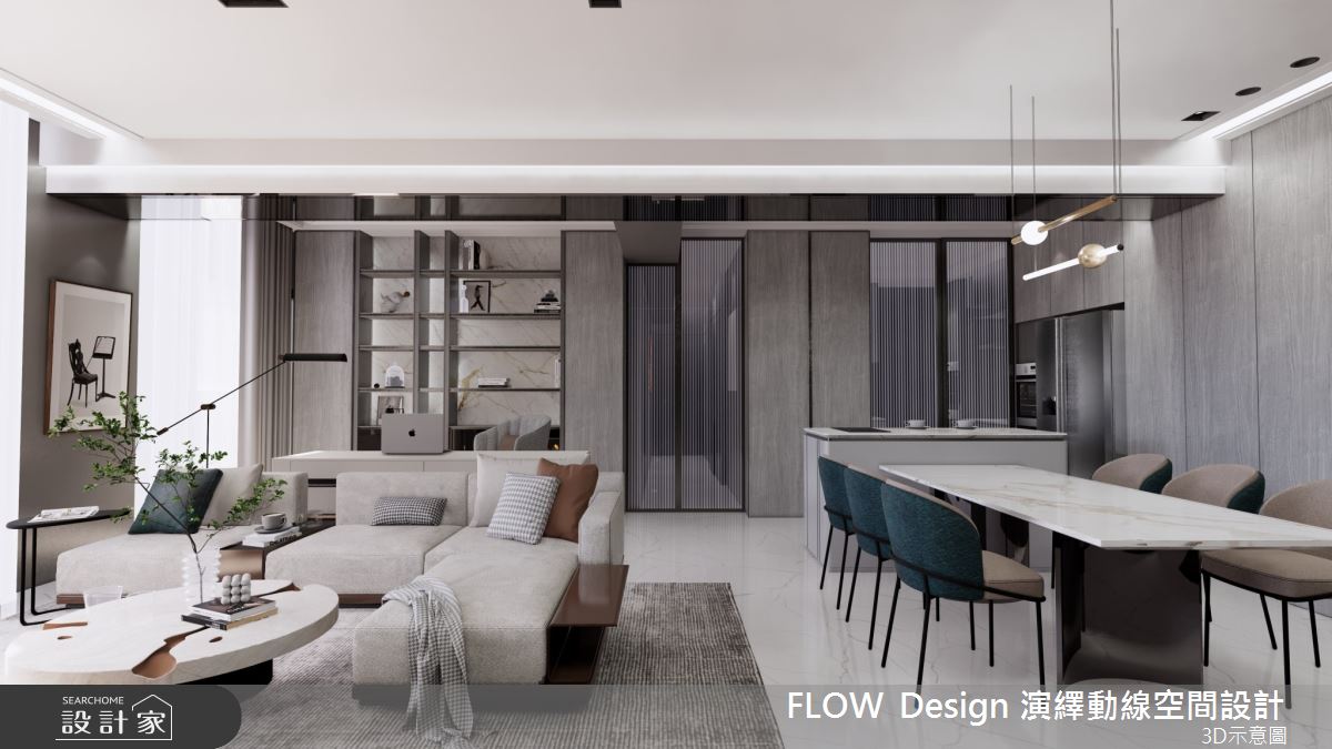 在不可变动的建筑框架中,演绎~人与空间中的动线,在动线的变化过程中,创造无限的空间可能,演绎动线其寓意为【撇开材质贴覆,琢磨其空间的最大可能】致力于整体空间设计规划。