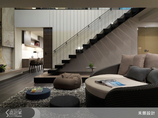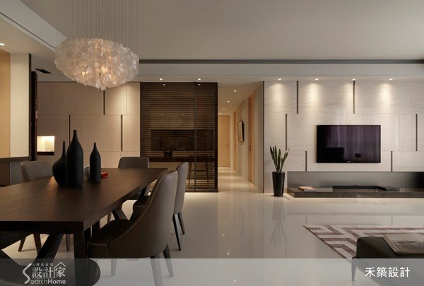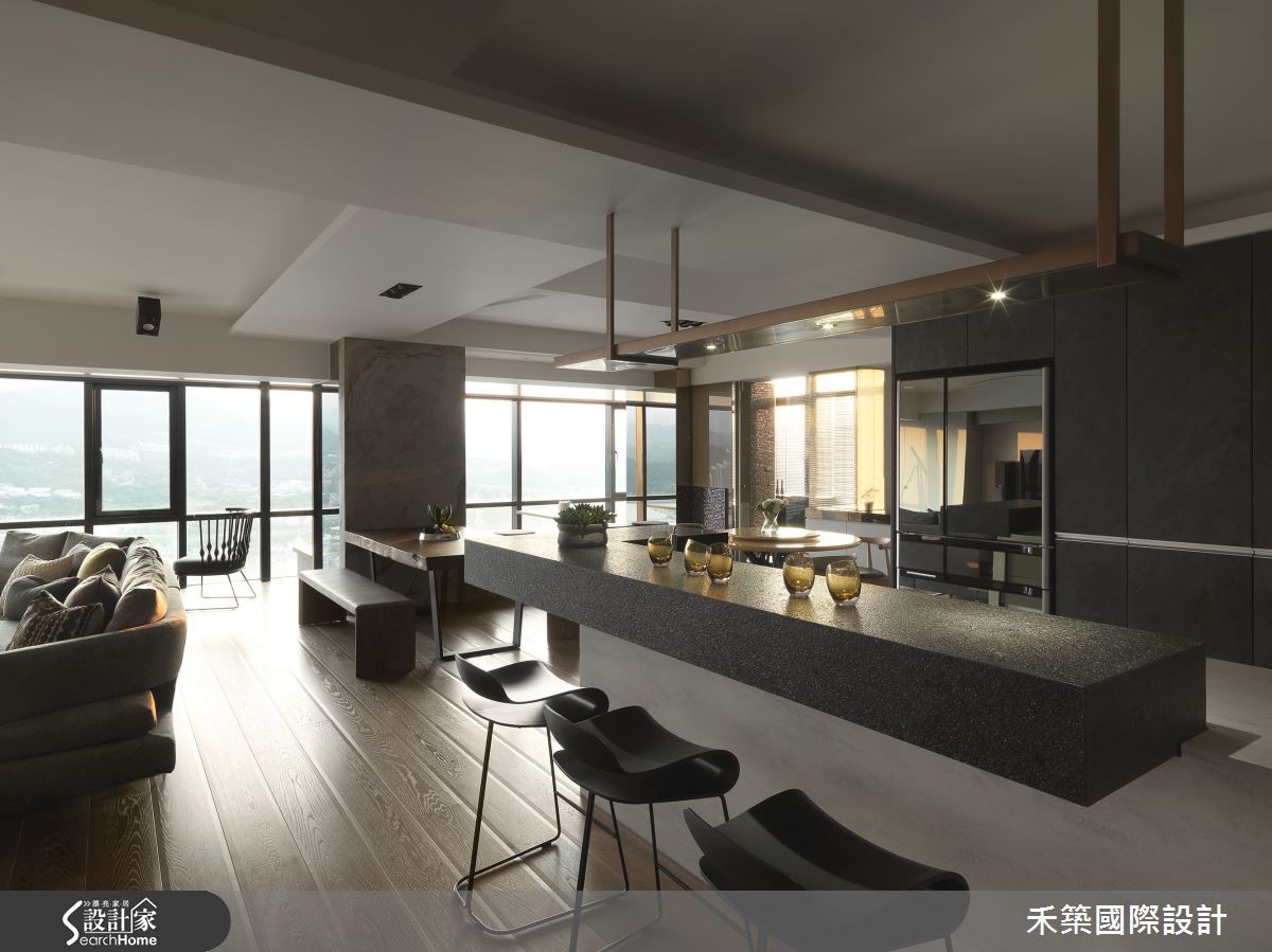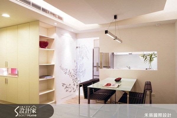 <牆面造型保留視覺穿透>餐廳與廚房之間以牆面隔開,但是為了保留視覺上的穿透性,將牆面局部鏤空處理設計為玻璃材質,讓整個空間在視覺上看來層次分明、不顯狹隘,同時也界定了不同空間的特性。圖片提供©禾築設計