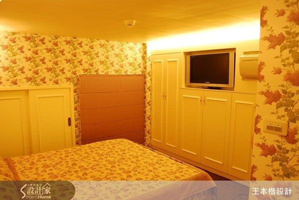 主臥室的色調採用夢幻紫為主軸,特別挑選進口小碎花壁紙,紫色壁布襯托著歐式壁燈,連貫著床頭上的格狀外推窗,打造出浪漫又舒適的兩人世界!