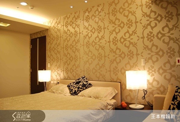 來到主臥室立刻被德國進口的壁紙深深吸引。質感隱隱浮現的氛圍中,可明顯感受到主人行事低調不浮誇的風格。
