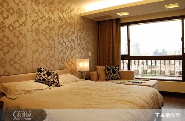 來到主臥室立刻被德國進口的壁紙深深吸引。質感隱隱浮現的氛圍中,可明顯感受到主人行事低調不浮誇的風格。看看窗外景觀,或坐或臥在貴妃椅上,也許看看書也許只是一個慵懶的時光。