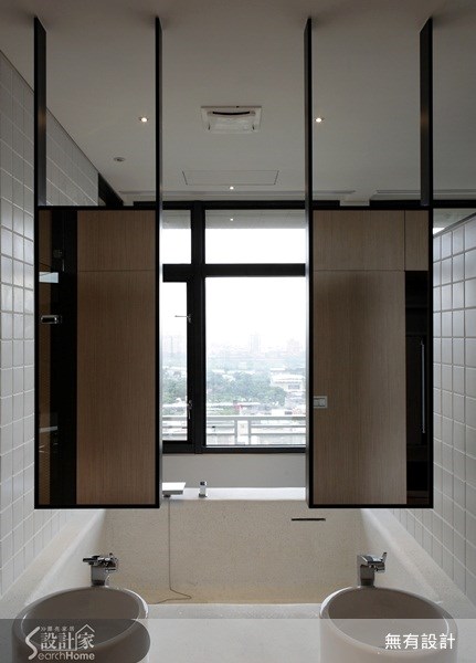 黑鐵打造的吊鏡加厚邊框在背面設置燈箱,可彌補自然採光不足。