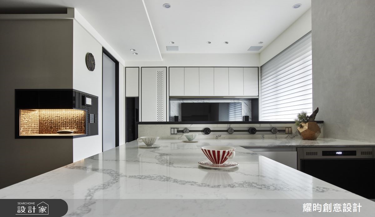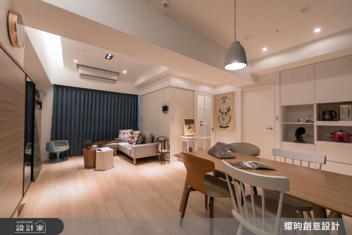 屋龄37年的狭长房屋,由于考虑原始格局采光有限,于是设计师进行屋况改造,塑造开放式公领域,让光线可自由流通,同时辅佐灯光照明,