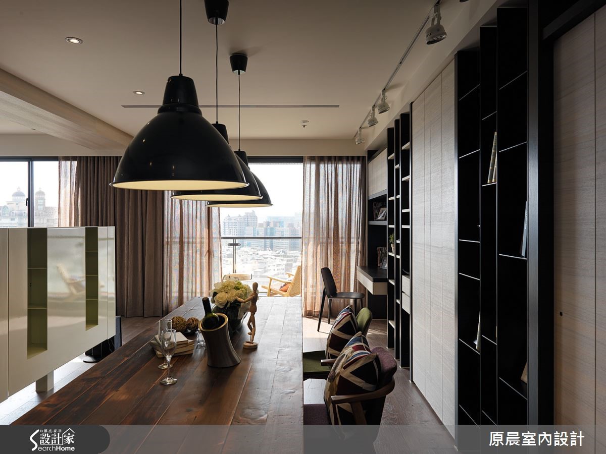 在198平米住宅中,设计师替屋主一家规划了孩子的游乐殿堂;在家具及材质上,采用大量木元素,打造出令人安心的无压空间,并加入跳色沙