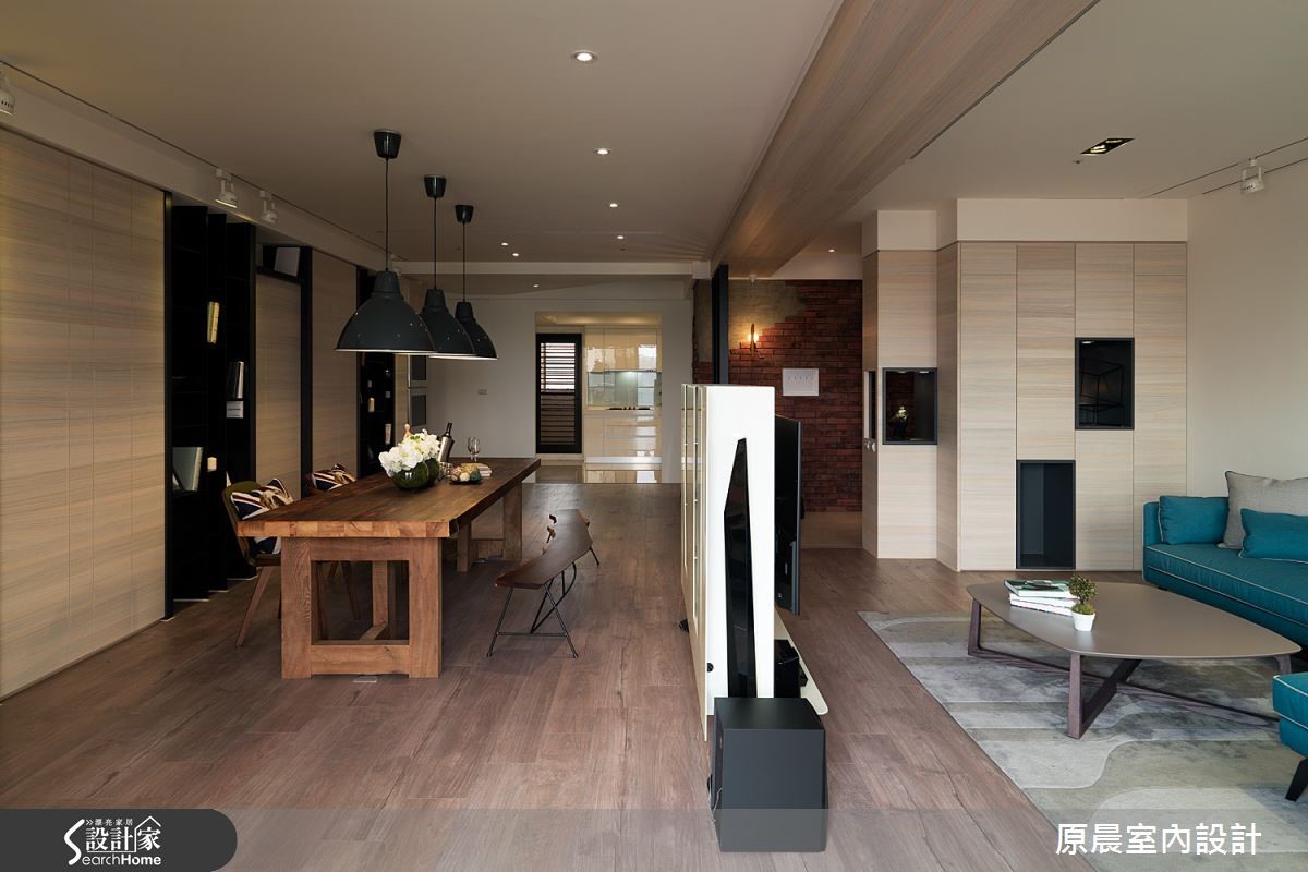 在198平米住宅中,设计师替屋主一家规划了孩子的游乐殿堂;在家具及材质上,采用大量木元素,打造出令人安心的无压空间,并加入跳色沙