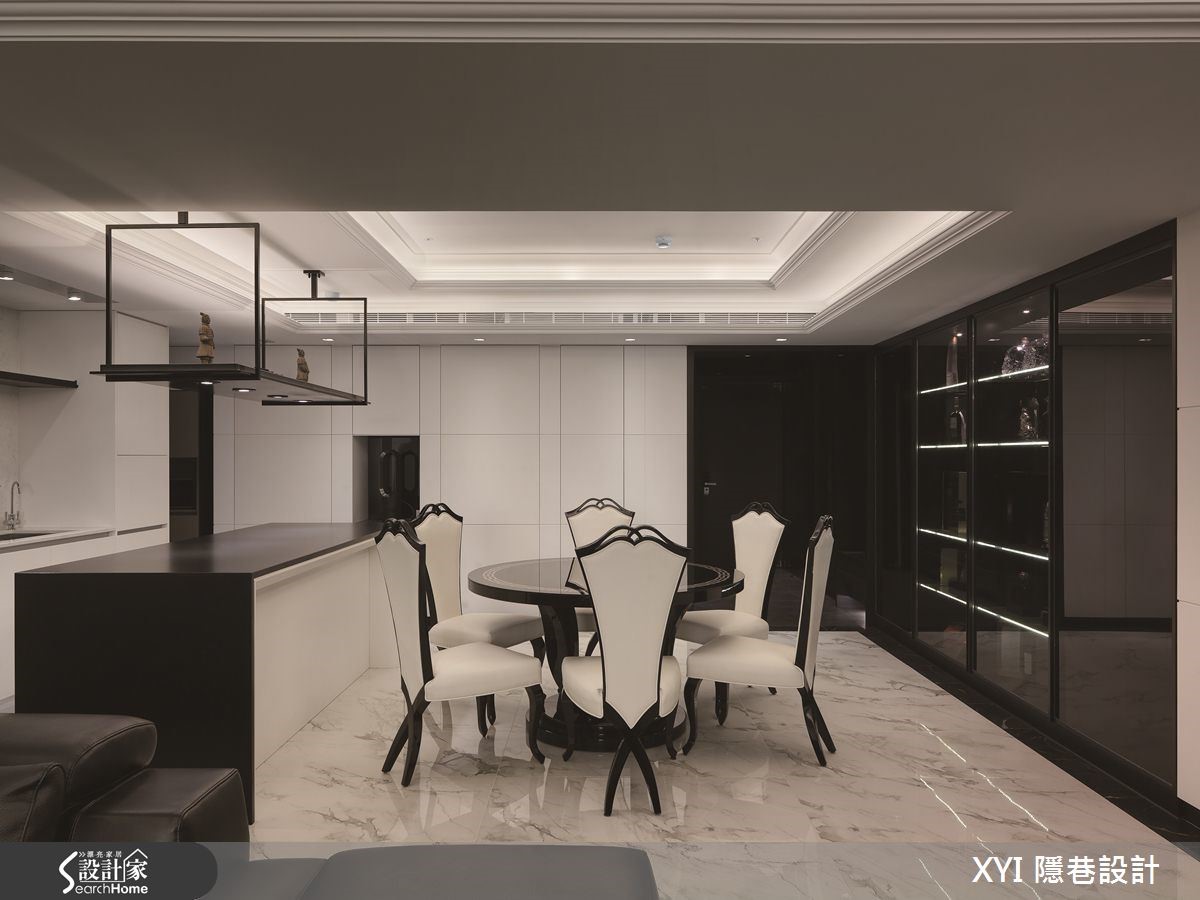 为了凸显以现代风表现的室内设计,设计师加入黑白根大理石、卡拉拉白大理石、银狐光面大理石等,让石材完美搭配,同时加入简练的对比