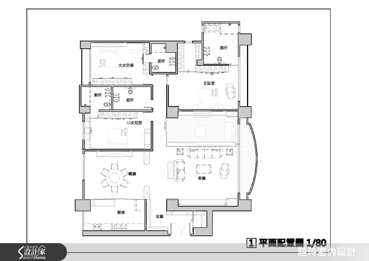 设计师善用专属新古典平衡对衬、雍容典丽的特性,烘托297平方米大宅的气度,宛若一位成熟女子的绝代风华,让母亲与两位女儿在金质粉黛