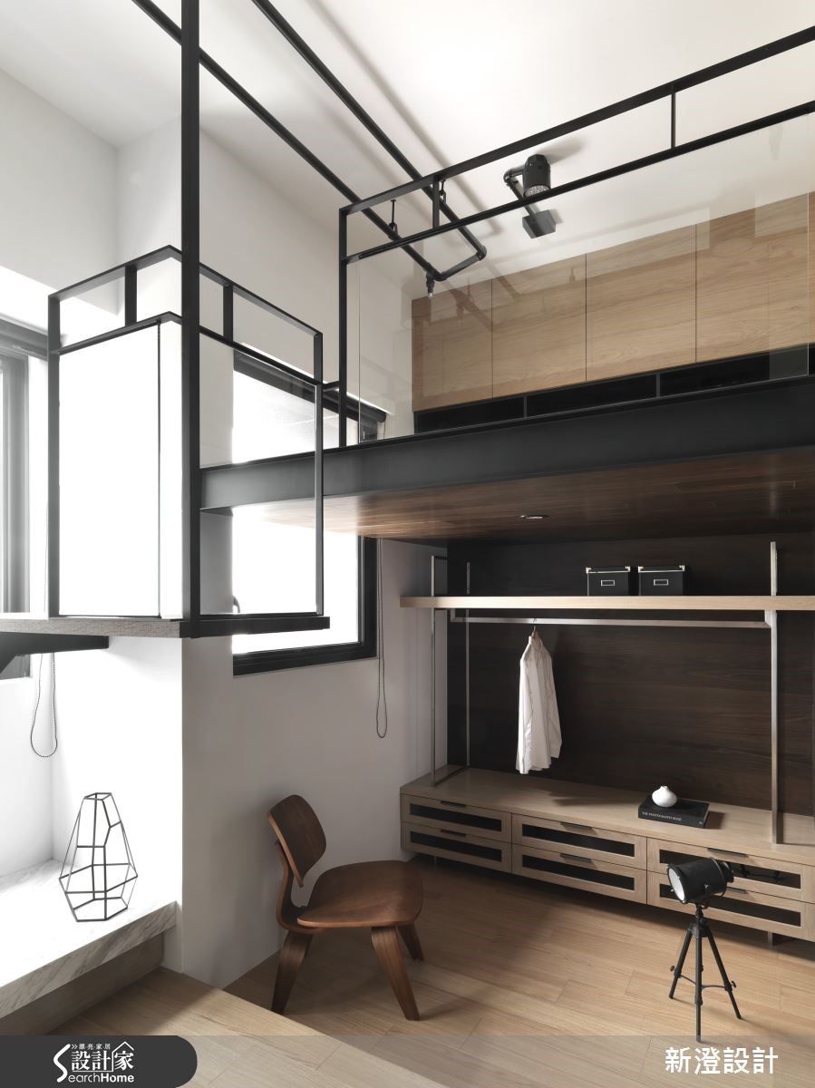 设计师援引"微型住宅"概念套用于43平方米小户型,利用跃层设计与开放式空间引光入室,佐以利落的线条设计,让视觉风景更加清透聚焦,