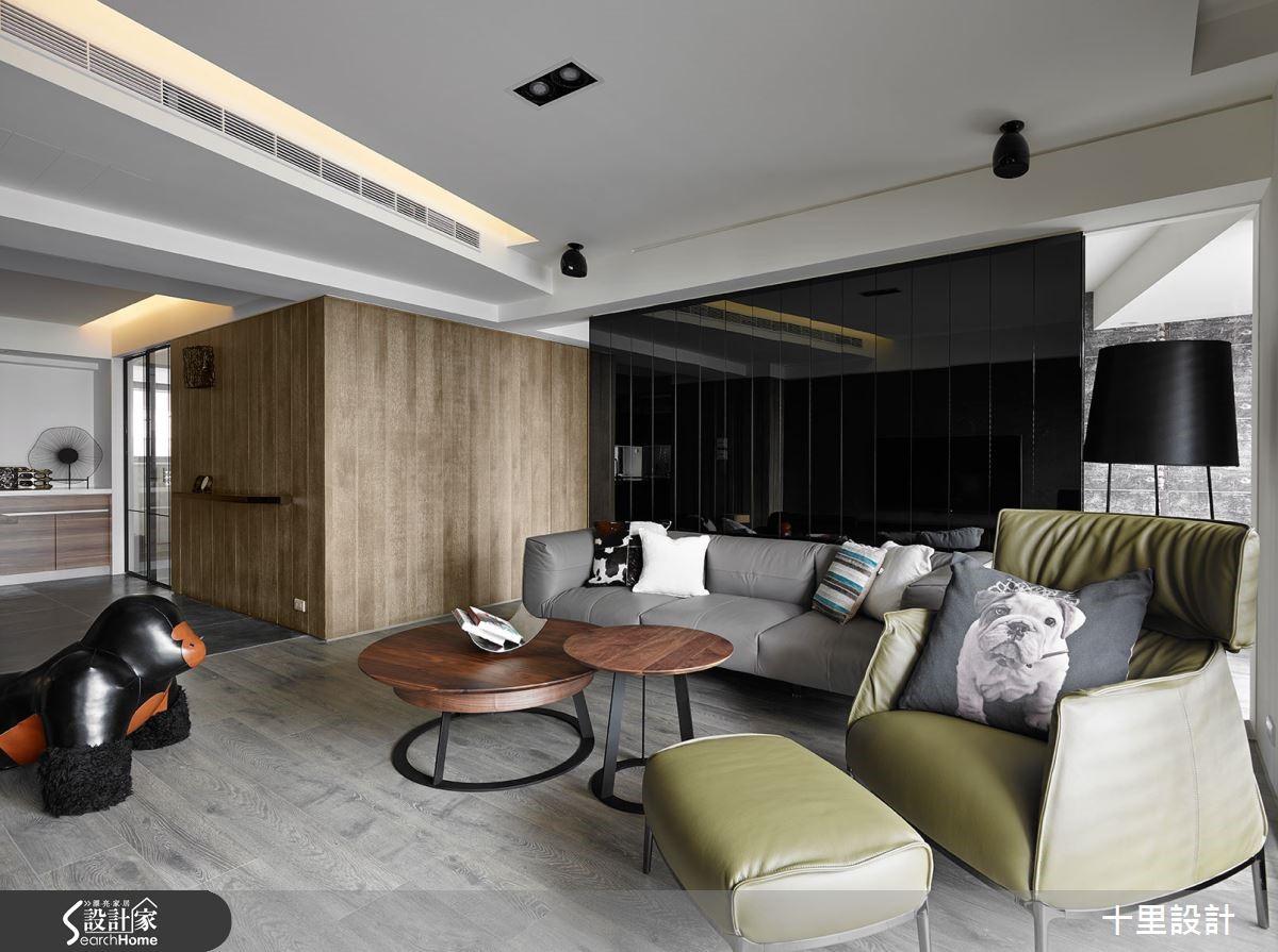 一向给人印象较强烈的现代风,在设计师的巧手设计下,在黑白色调之外,辅以钢刷木皮、仿锈铜砖等材质,绘上自然脉理的感性笔触。并融