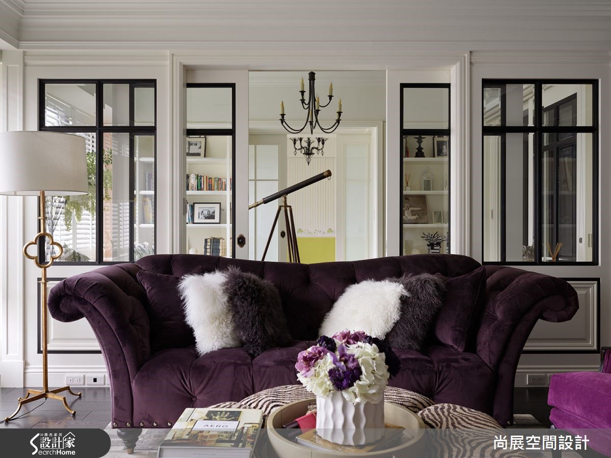 这户大宅中,妆点狂放的紫红沙发、率性的斑马纹桌几、香奈儿式的黑白门片、搭上熠熠生辉的金属吊灯,将各种精彩设计融会贯通,表现好