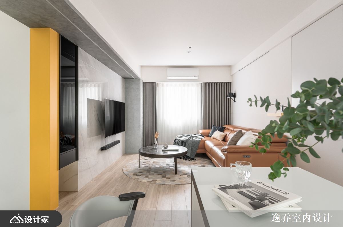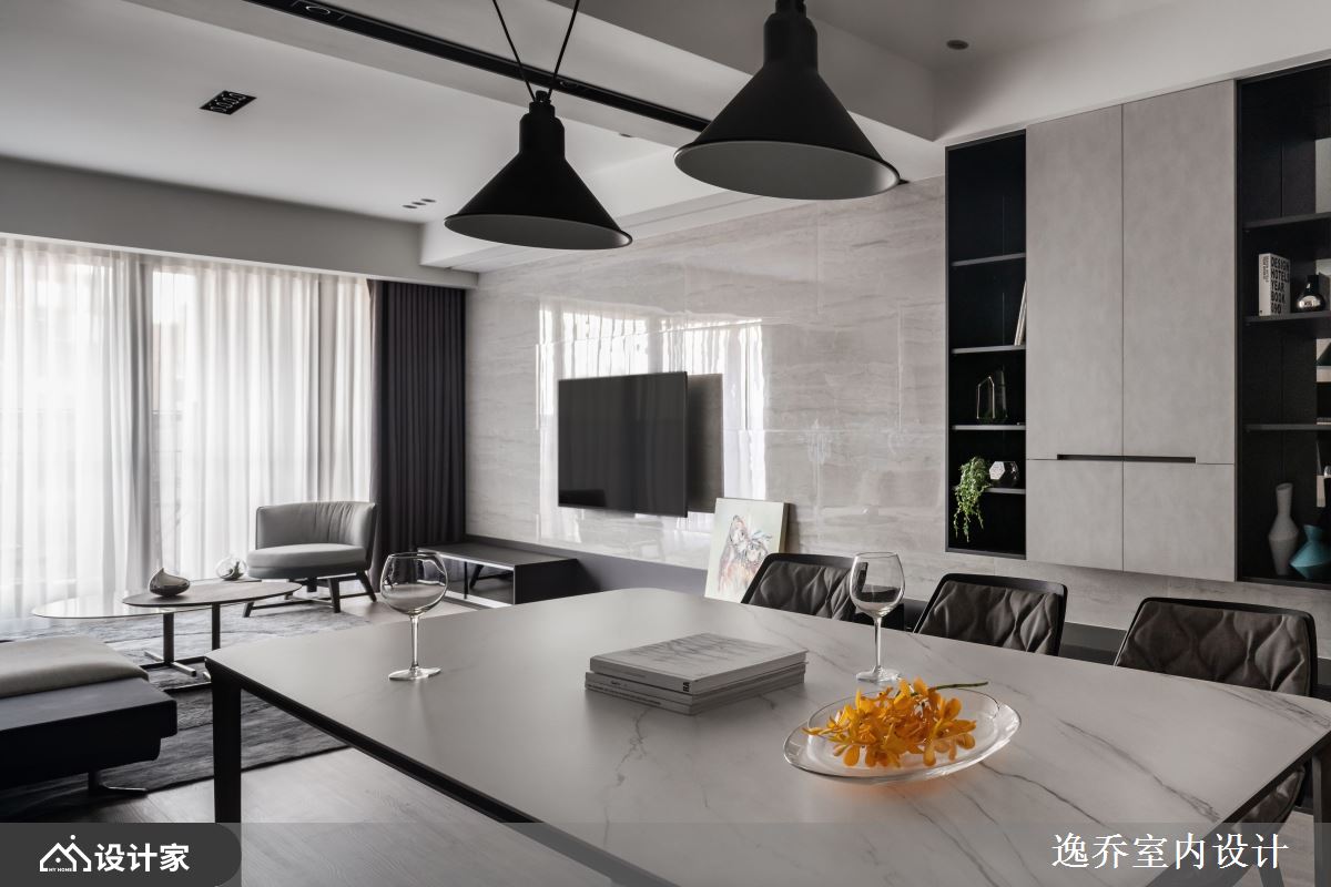 106平方米的老屋,设计师替空间挹注现代风格,于天花勾勒流畅利落的线条,隐性区划各个场域,并透过材质、色彩、软件的合宜比例,刻画