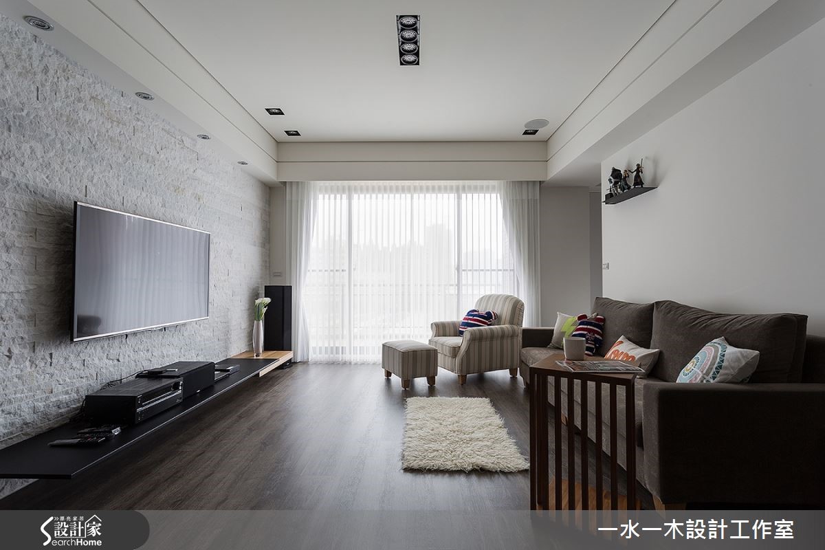 注入木质和文化石,净白空间添暖意