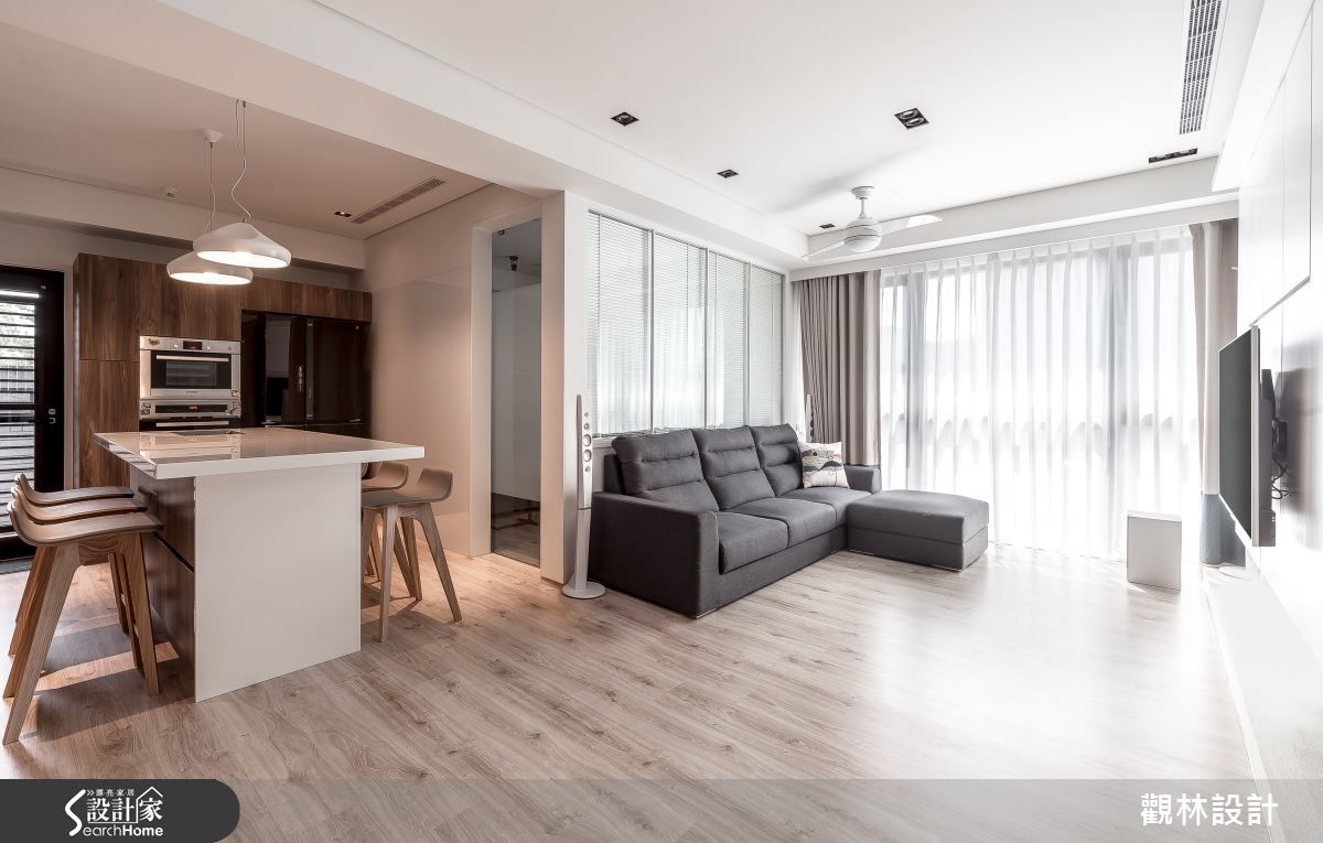 79平方米的居宅,是新婚夫妻的共同生活空间,设计师融入清新色彩,选用自然的材质肌理,善用开放格局与穿透设计,替年轻夫妻与两只爱