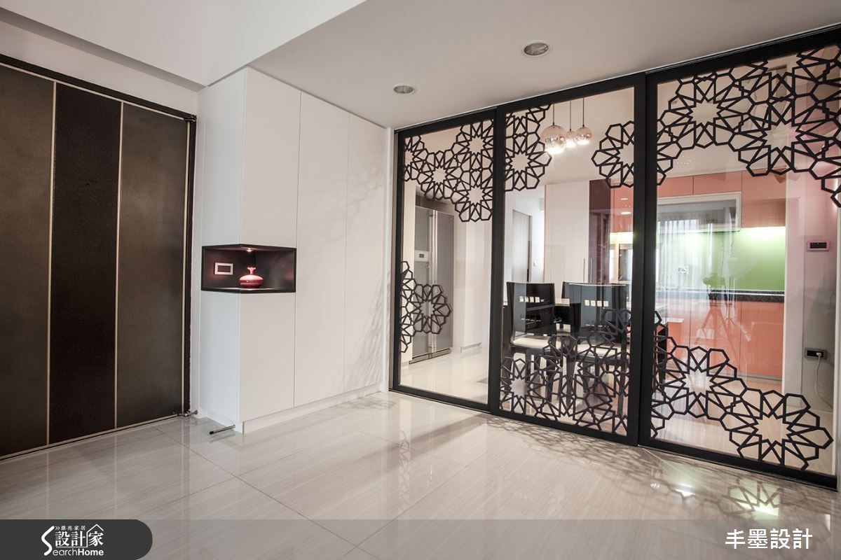 本案整体以白色铺底,局部点缀黑色,呈现色调对比的美感,并让空间感自客厅延伸至餐厅、厨房,给予格局上的层次铺排,让家释放简约魅