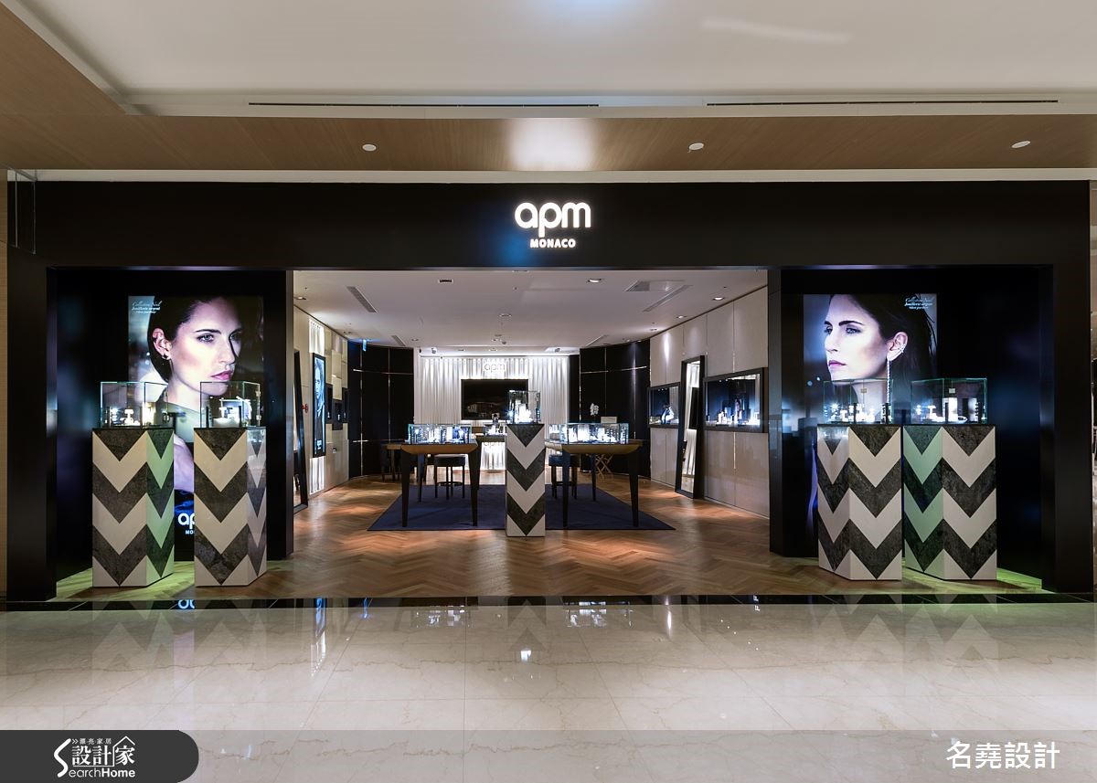 apm MONACO珠宝店将商店机能结合Lounge bar调性,透过多元材质的混搭拼接,搭佐灯光营造与家饰铺排,藉由空间设计衬托商品的主体鲜明