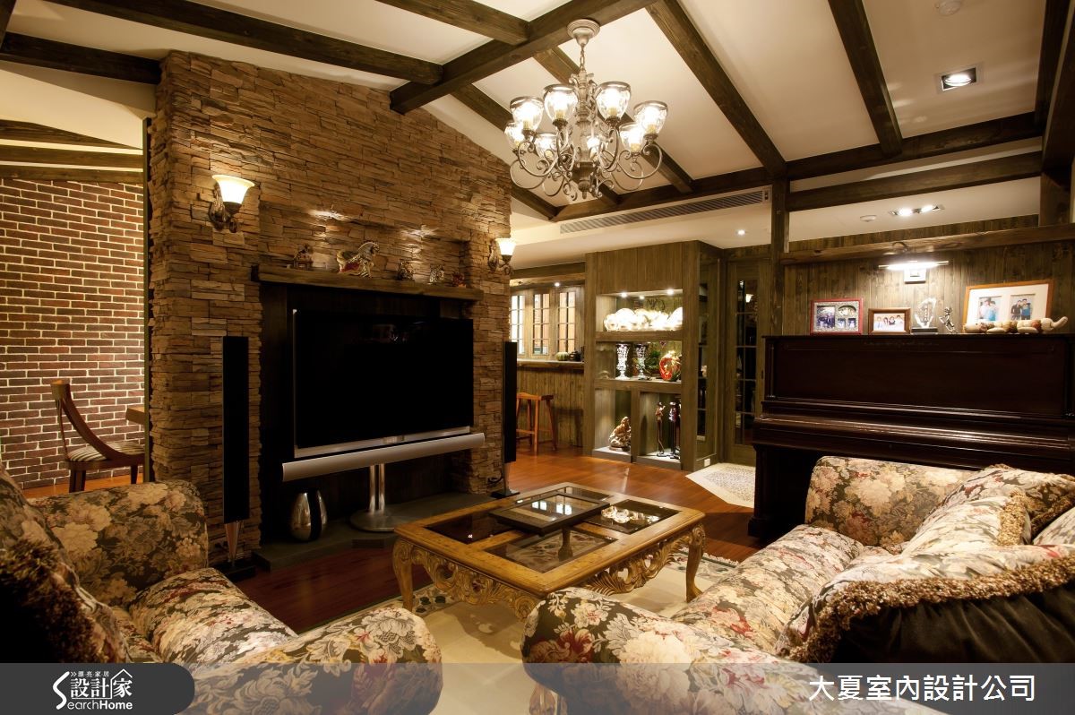 这间198平的空间中,设计巧妙运用乡村风格,撷取自然朴质的设计元素,粗犷石材、复古红砖、雕花线板堆叠出宛如田园般的原始韵味,一享