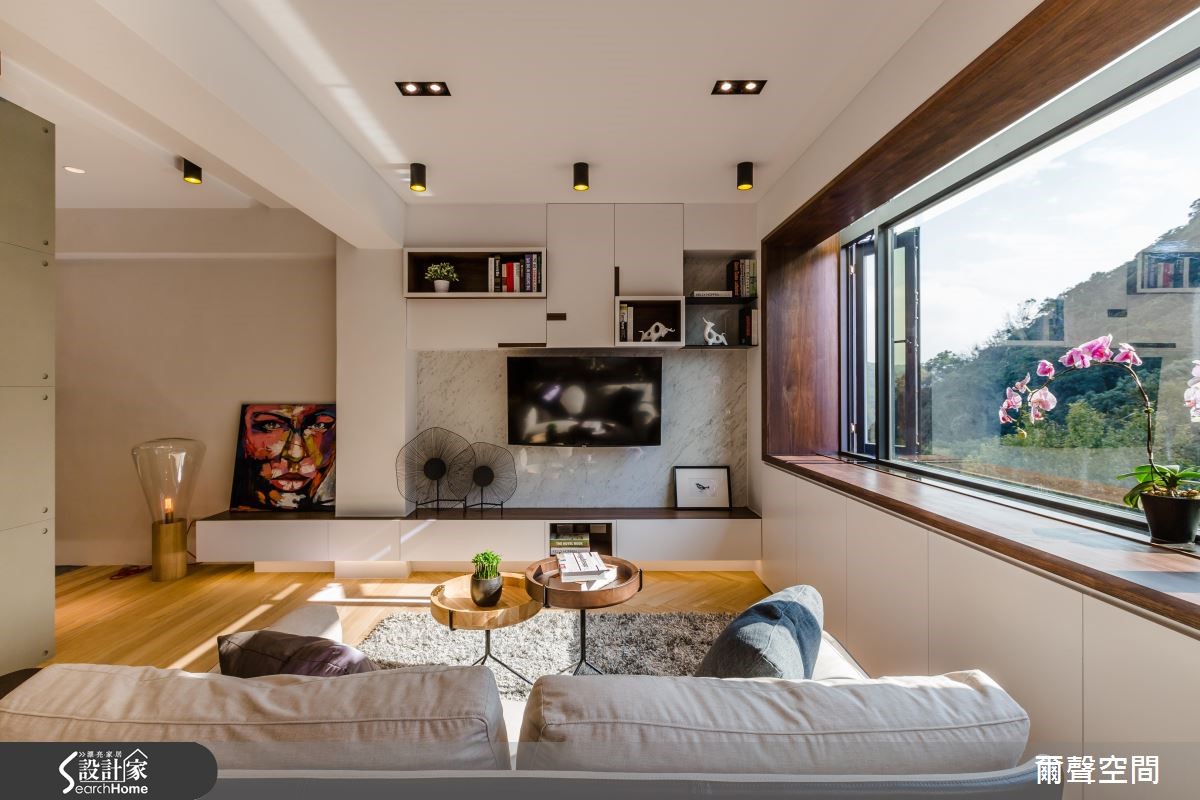 屋主夫妻喜爱旅行、阅读,拥有大量藏书,期盼回到家能沉静身心,有一个适合休憩驻足的角落。设计师延揽清新日光和绿意,利用纯白木框
