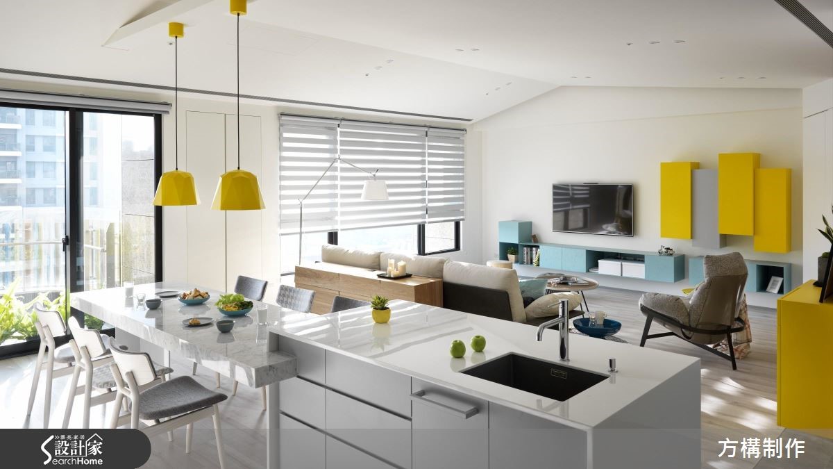 灿烂阳光、鲜明清新的摆件以及带点复古气息的实木人字拼地板,让这处132平方米的北欧宅显得更舒适迷人,而设计师也藉由穿透式设计,释