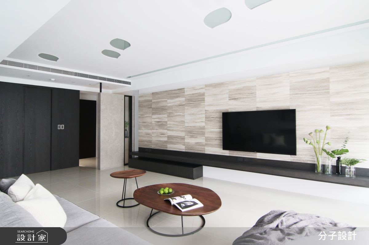 99平方米现代风居宅,居住者为两名年轻屋主,设计师考虑到两人的居住型态,将三室两厅的其中一间居室打通,更改为主卧更衣室,拓增更