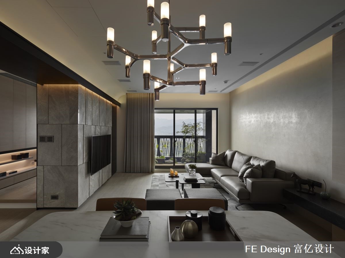 设计师承袭房子的地理优势,以大面积挑高落地窗揽进好采光与优美景观,并改变楼梯位置,透过格局的变动,让整体空间更为开阔,快跟着