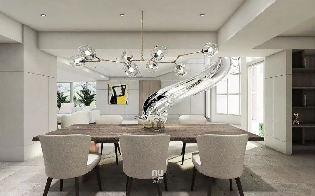 考量到业主夫妻从事时尚产业,设计师在215平米的现代风大宅,规划绚丽光带环绕的精品展示空间,让每个角落都诠释出不同的潮流焦点,突