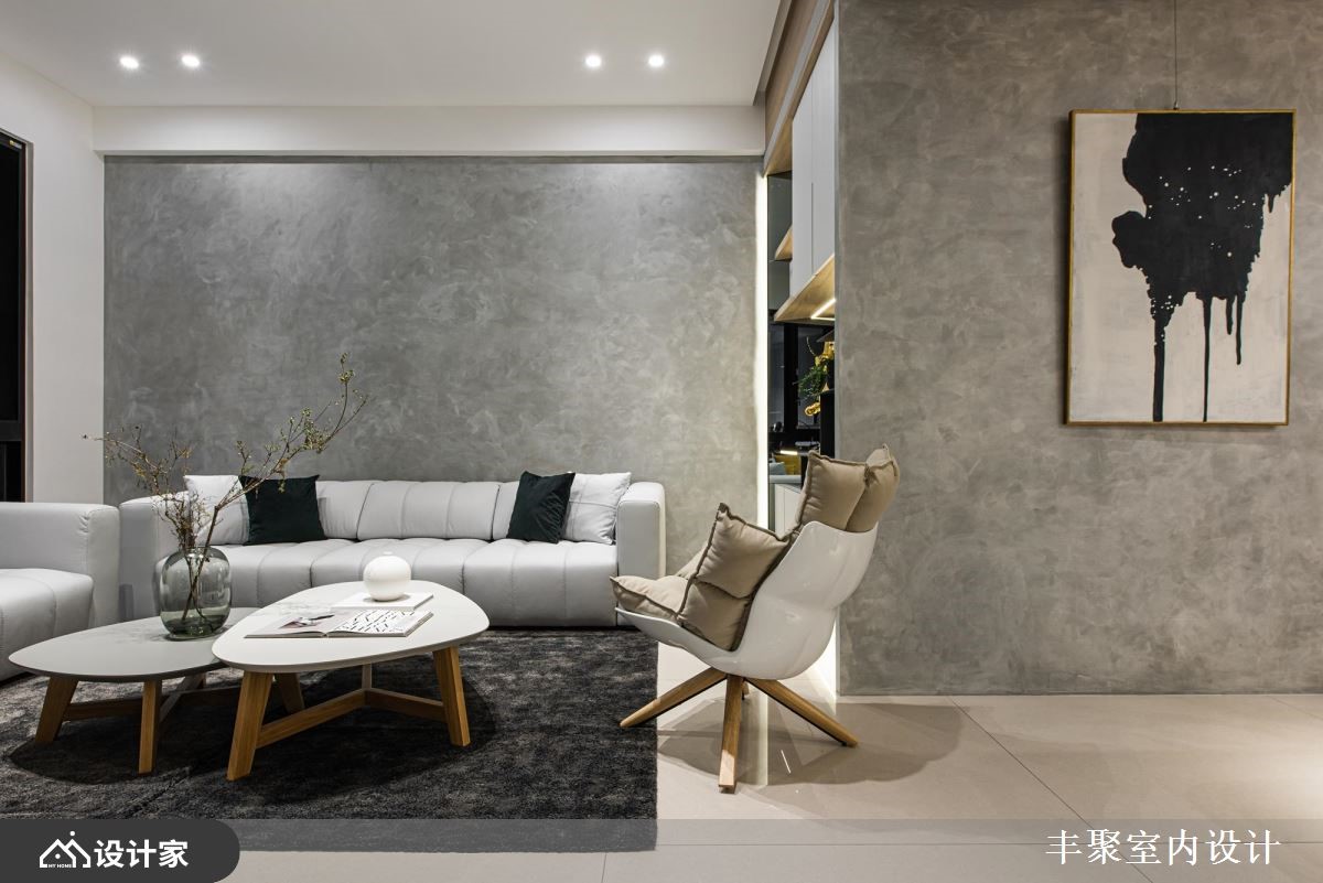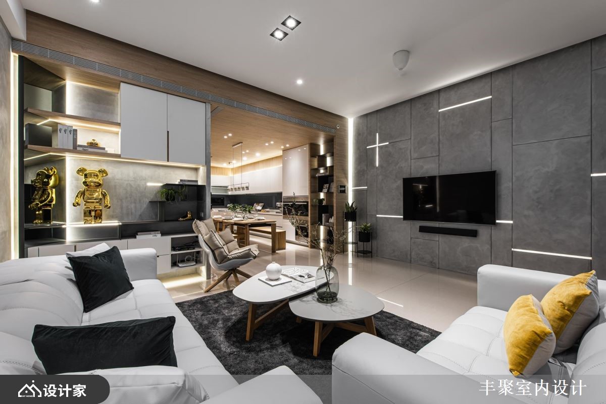 设计师依循屋主预算,发挥细腻的创意巧思,以利落现代风勾勒全室,并结合柜体及灯光美学,创造独栋楼的美形视野,同时挹注开放格局,
