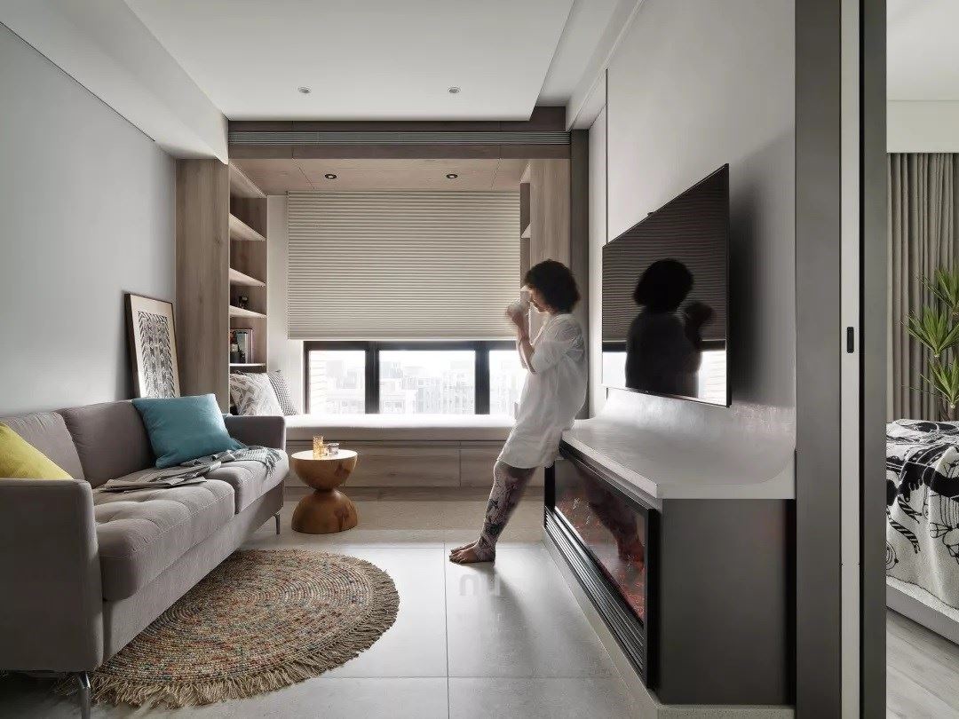 置身在都会里的单身小户型,透过回字型动线的设计,将公私领域弹性串连,客厅窗边引入充沛光源,且安排卧榻,彷佛一处私人天地,可进