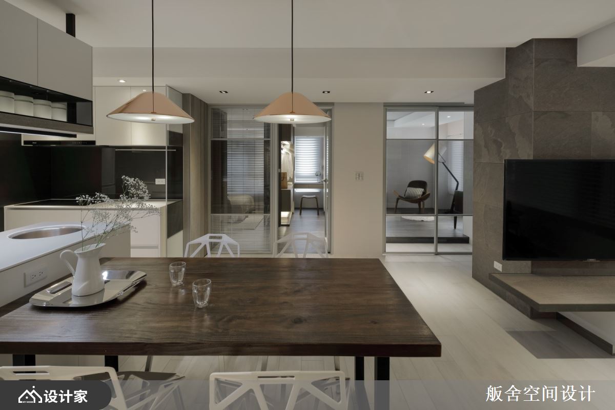 设计师并考虑到老屋空间旧有屋况窗开窗太小,导致采光不佳,透过将客厅主卧窗户台面降低的手法,争取更多的入室采光,搭配利落清爽的