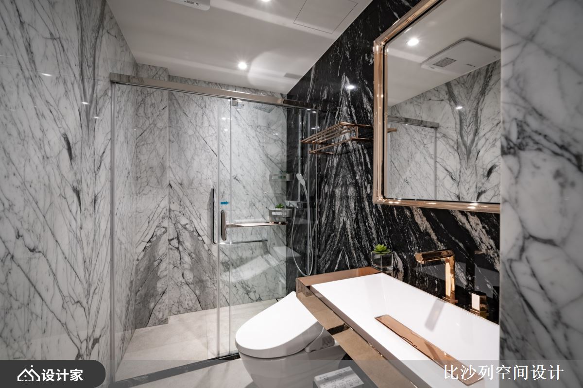 延揽户外迷人的城市绿意风光,室内透过大量石材创作,擘划非凡气派,搭配木纹的温润质感,挹注安定、温暖,再藉由镀钛的细节描绘、点
