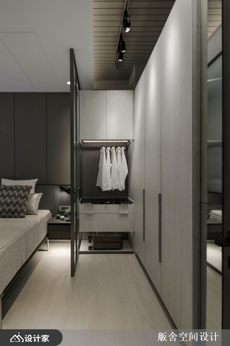 此案为15坪新成屋,舨舍空间设计 颜善松设计师解放原有的既定隔间,以穿透式玻璃作为场域分野,有效串联充沛采光并延伸空间视觉,同时
