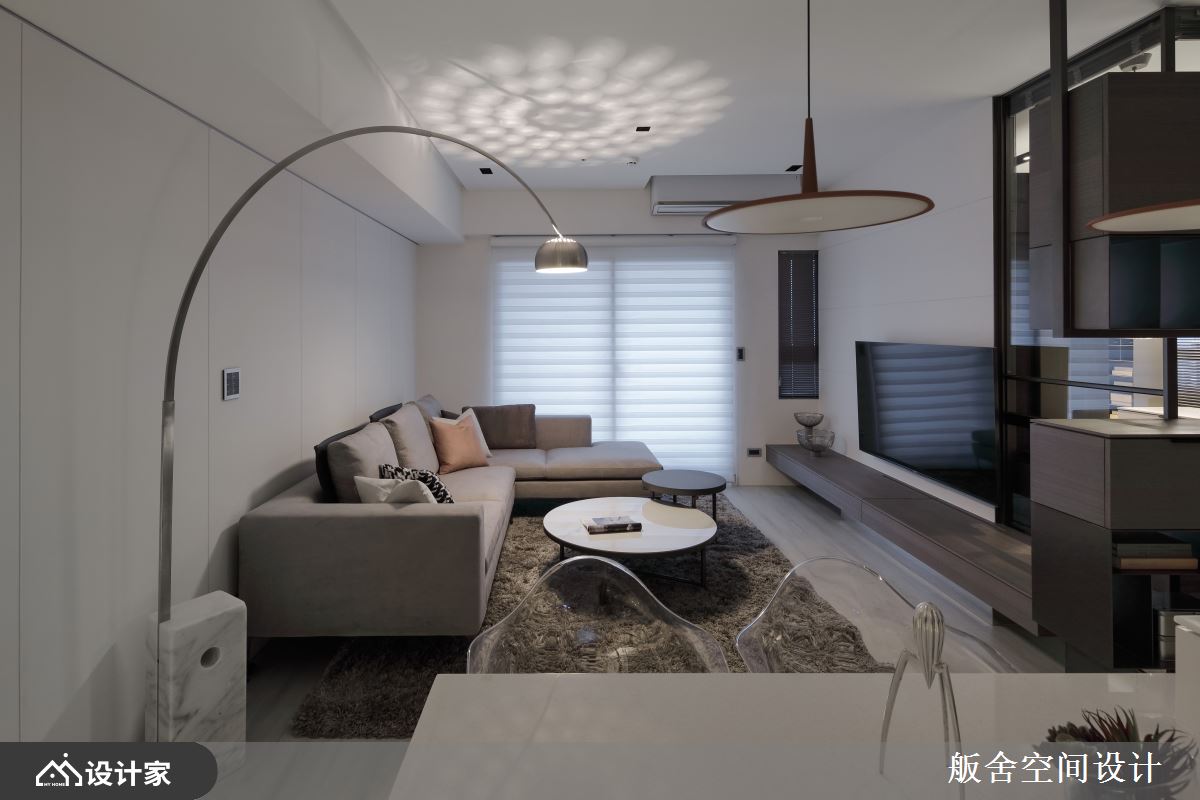 “若非必要,坪数不足不用硬隔到三间房,保留坪数给公共区域或升级卧房和卫浴会拥有更好的生活品质。”新成屋的玄关墙面铺贴灰镜,创