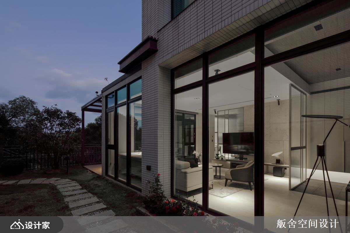 共三层楼的独栋别墅,原为毛胚房在格局规划上拥有灵活的自由度。一楼为公领域语庭院区,进门玄关处通过长虹玻璃和透明玻璃交错的组合