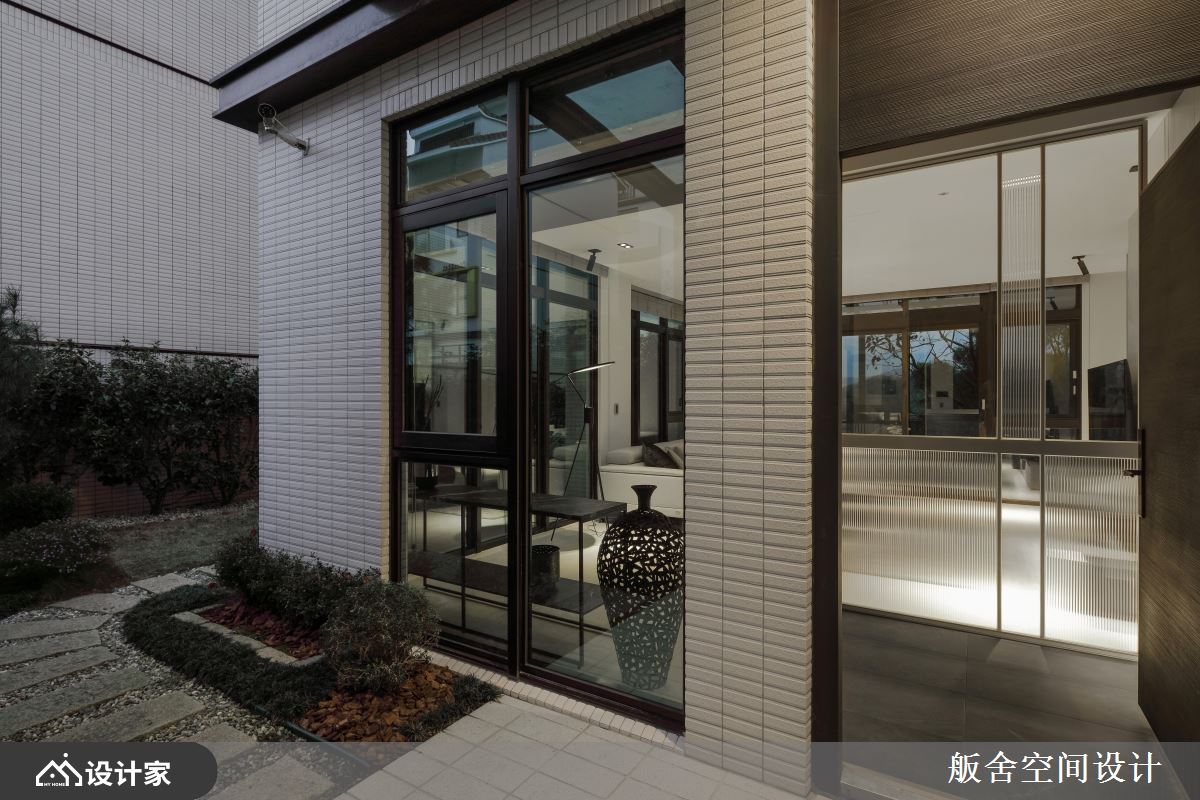 共三层楼的独栋别墅,原为毛胚房在格局规划上拥有灵活的自由度。一楼为公领域语庭院区,进门玄关处通过长虹玻璃和透明玻璃交错的组合
