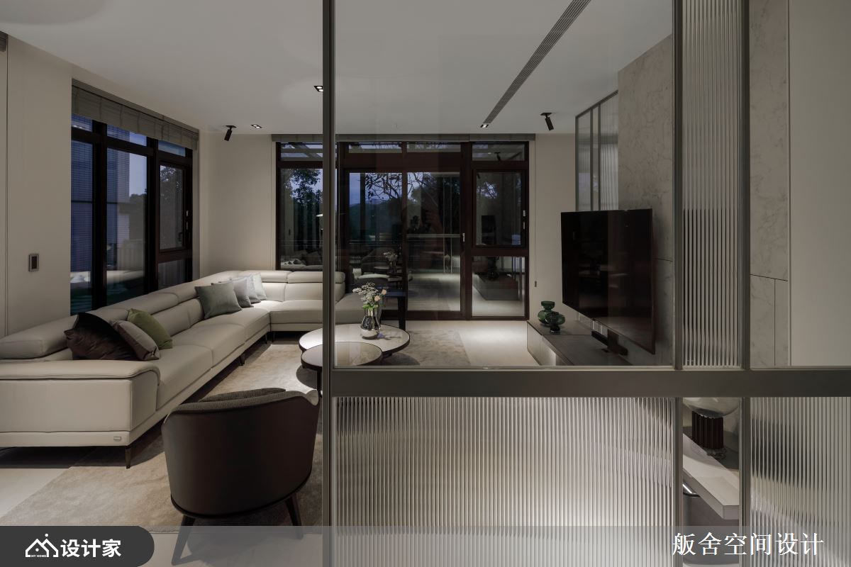 共三层楼的独栋别墅,原为毛胚房在格局规划上拥有灵活的自由度。一楼为公领域语庭院区,进门玄关处通过长虹玻璃和透明玻璃交错的组合