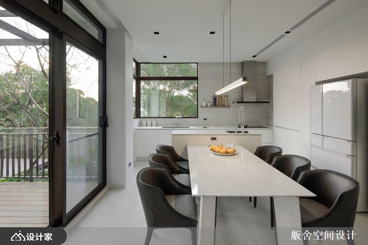 共三层楼的独栋别墅,原为毛胚房在格局规划上拥有灵活的自由度。一楼为公领域语庭院区,进门玄关处通过长虹玻璃和透明玻璃交错的组合