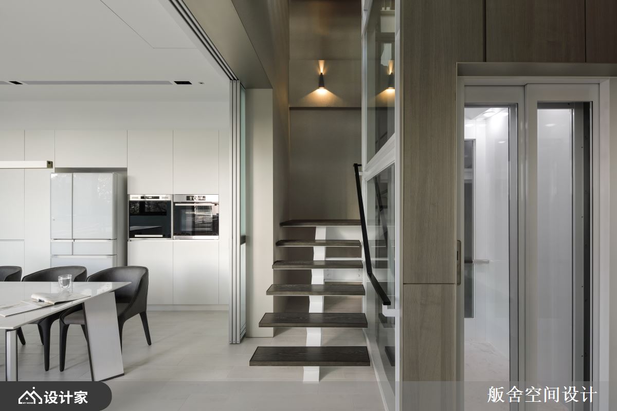 共三层楼的独栋别墅,原为毛胚房在格局规划上拥有灵活的自由度。一楼为公领域语庭院区,进门玄关处通过长虹玻璃和透明玻璃交错的组合
