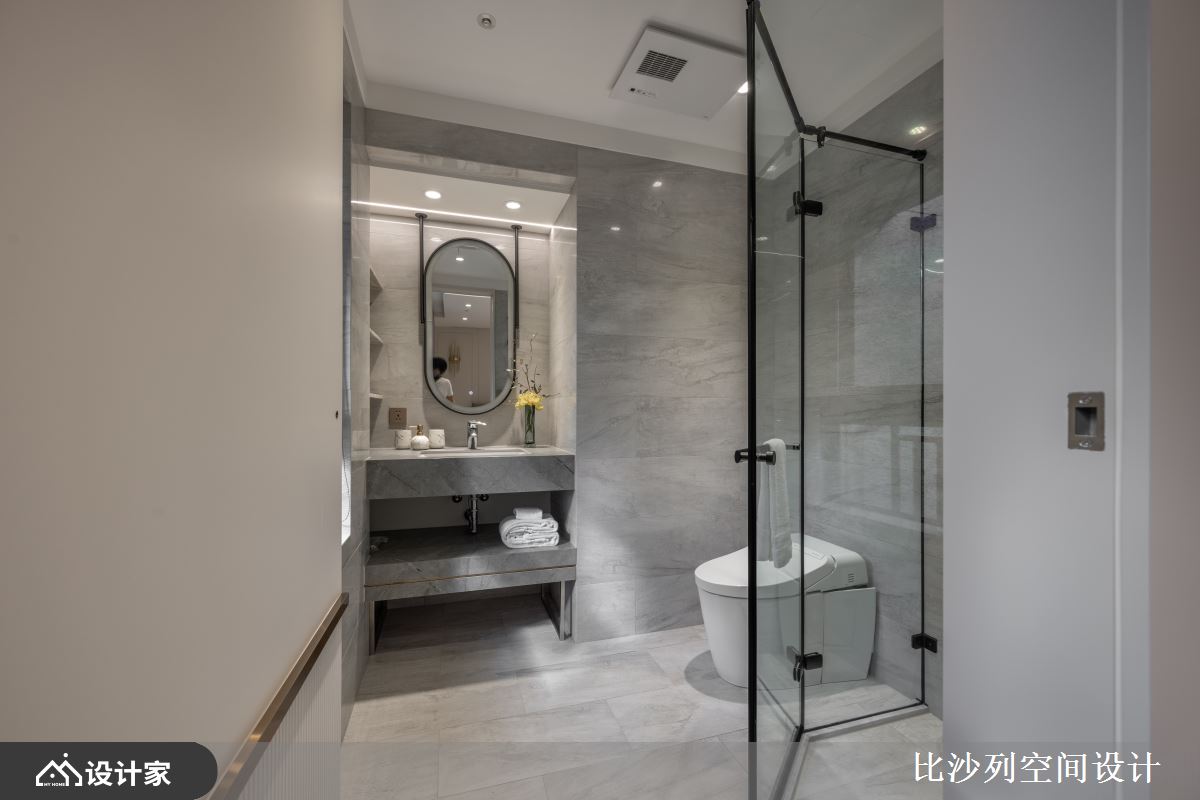 198平米的毛胚屋在设计上,融合了现代风的流行元素,以白色为基底,搭配大理石、镀钛、小冰柱玻璃,打造出低调奢华且时尚的生活空间,