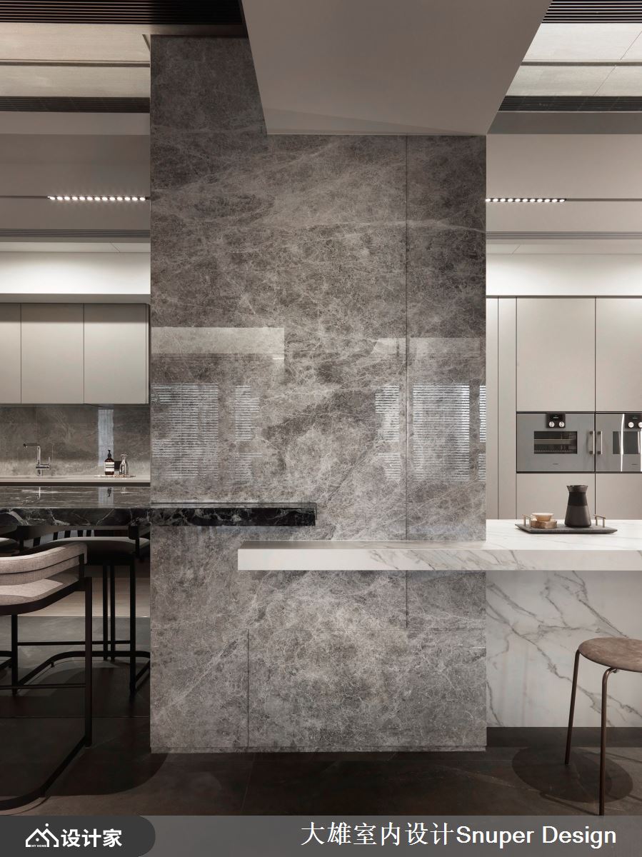 坐落于都会地段的393平米现代豪邸,为屋龄4年的新成屋,大雄室内设计 Snuper Design善于将居者个性显化为空间主题,以丰厚质材堆叠富