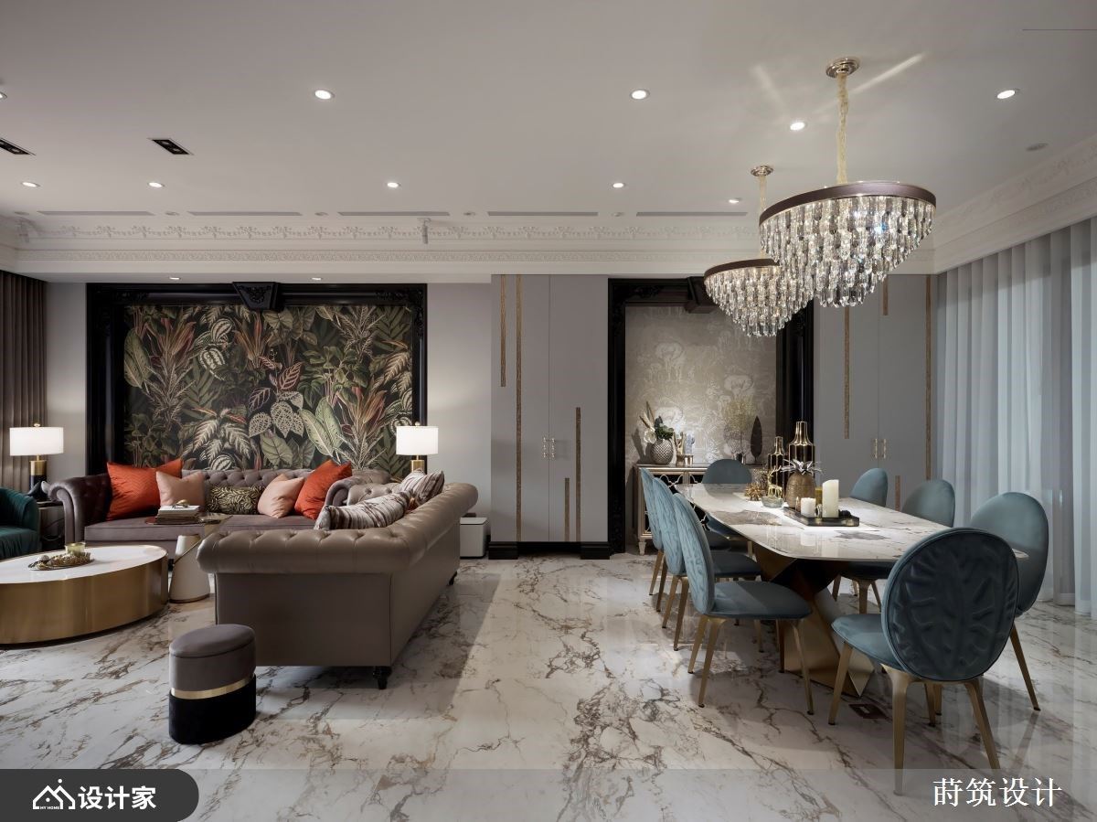 此案是自地自建设计,以新古典风格打造整体空间,除了古典细节的安排,更透过边框、图腾墙纸与自然语汇,华丽之中赋予生命力的美学灵感。