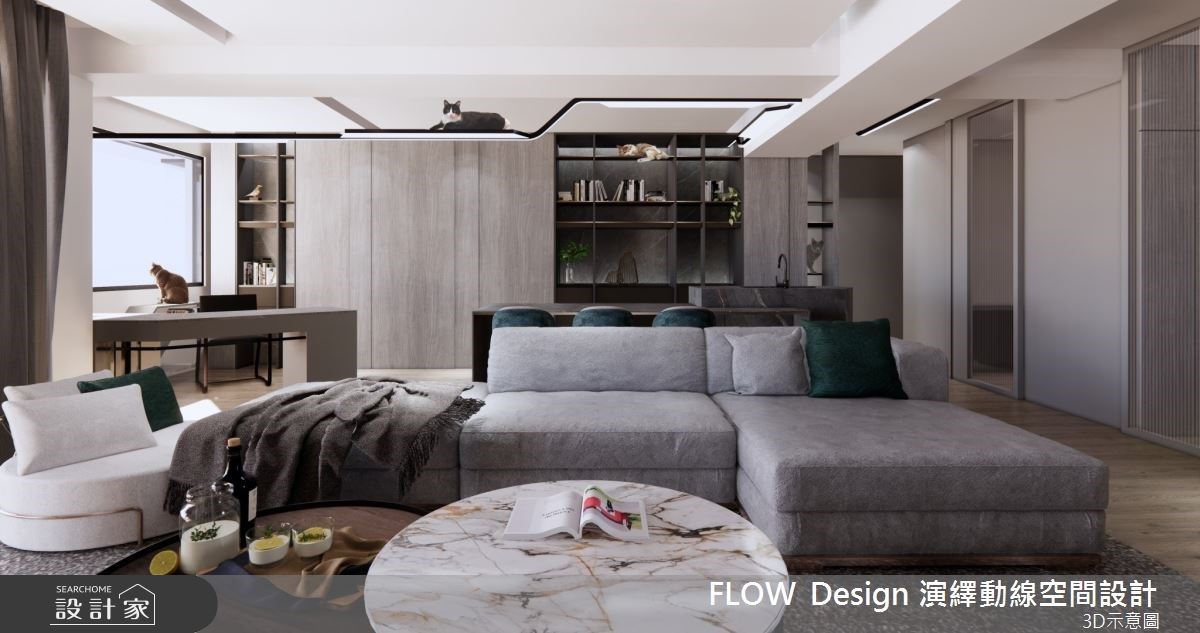 屋龄21年的老屋为长形格局,并具有动线不佳、水电管线老旧等问题,无法满足屋主的生活期待,以及猫咪的日常活动。因此设计师将隔间打开,重新调整公、私领域的配置,不仅有效放大空间感,更连结了居家和猫咪的生活互动。